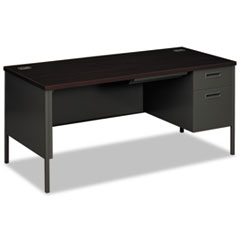 Metro Classic Series Right Pedestal "l" Workstation Desk, 66" X 30" X 29.5", Mahogany/charcoal