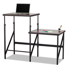 BI-LEVEL STANDING HEIGHT DESK, 57.5W X 24D X 50H, WALNUT/BLACK