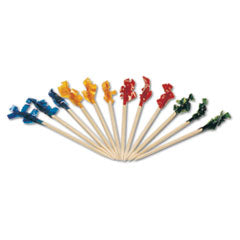 Regular Cellophane-Frill Wood Picks, 2.5", Assorted, 1,000/box, 10 Boxes/carton