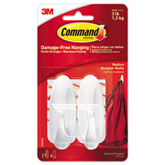 General Purpose Designer Hooks, Medium, 3 Lb Cap, White, 2 Hooks And 4 Strips/pack
