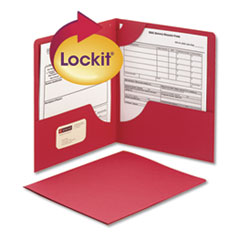 Lockit Two-Pocket Folder, Textured Paper, 11 X 8 1/2, Red, 25/box