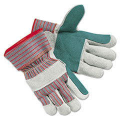 Men's Economy Leather Palm Gloves, White/red, Large, 12 Pairs