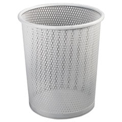URBAN COLLECTION PUNCHED METAL WASTEBIN, 20.24 OZ, 9" DIAMETER, STEEL, WHITE SATIN