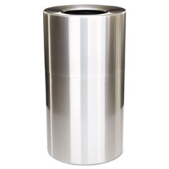 2-Piece Open Top Indoor Receptacle, Round, With Liner, 35 Gal, Satin Aluminum