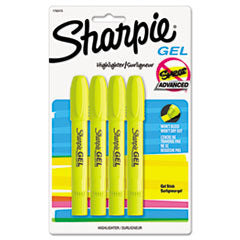 GEL HIGHLIGHTERS, BULLET TIP, FLUORESCENT YELLOW, 4/PACK