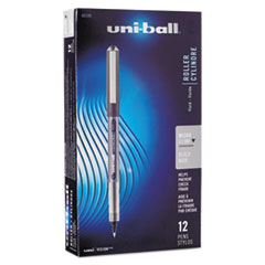 VISION STICK ROLLER BALL PEN, MICRO 0.5MM, BLACK INK, BLACK/GRAY BARREL, DOZEN